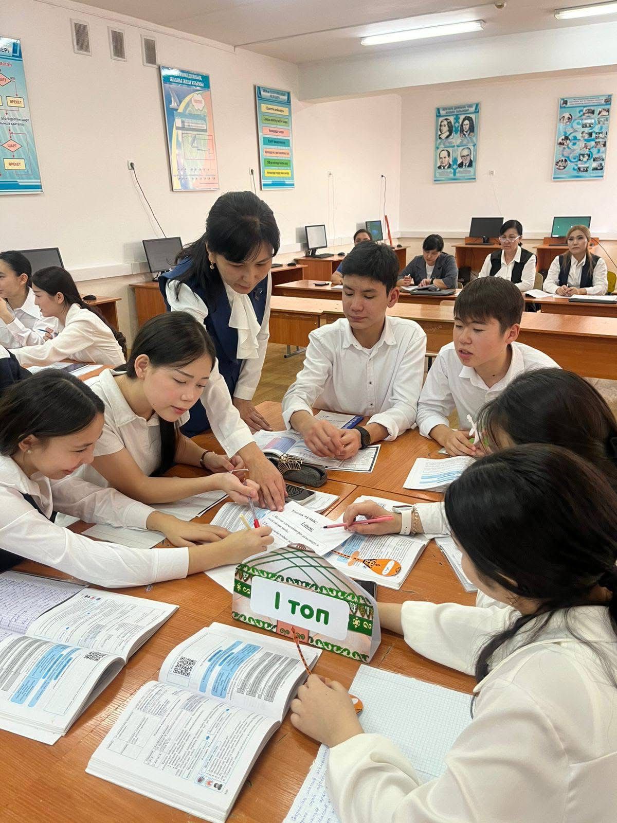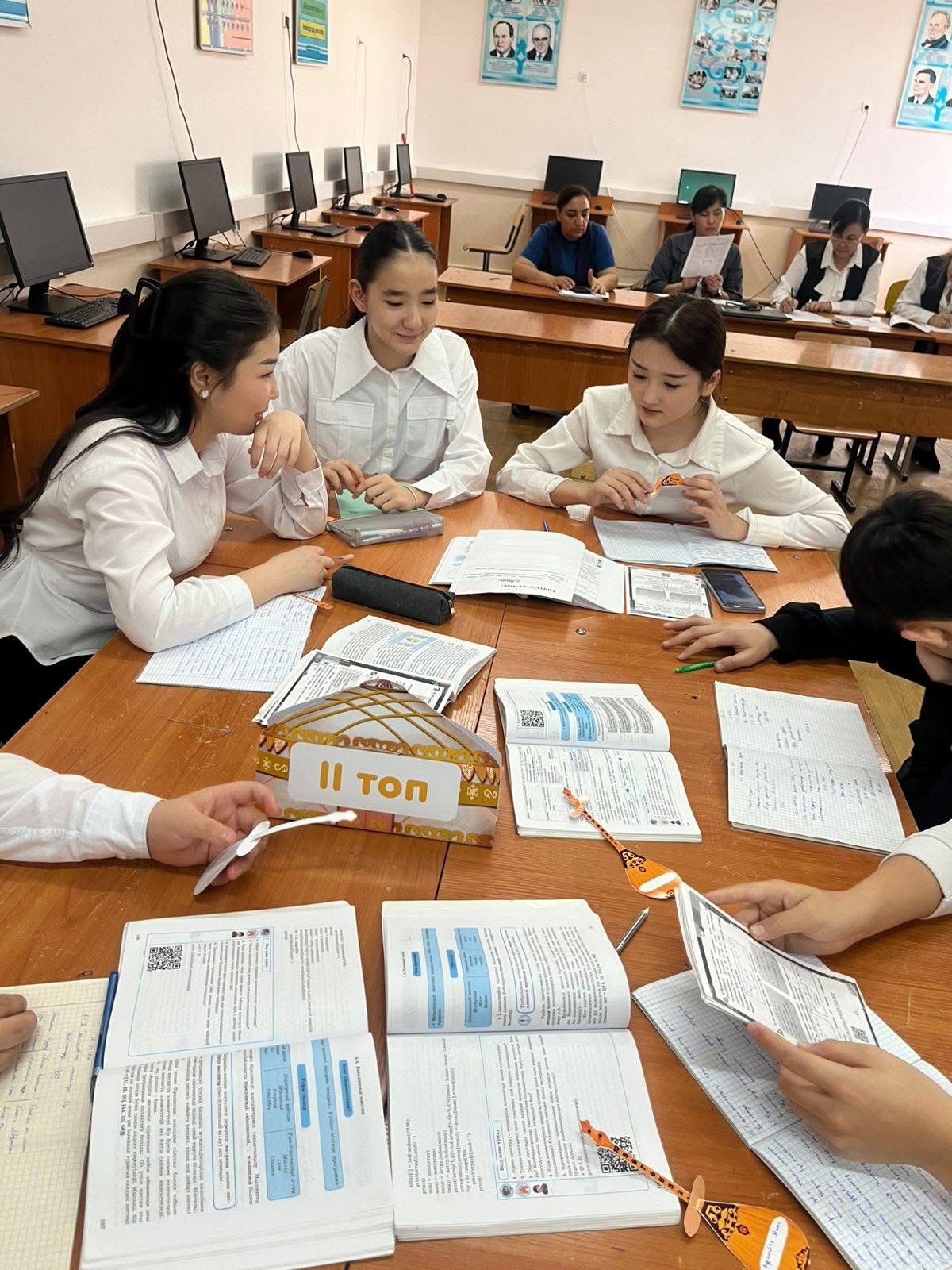 №58 жалпы орта білім беретін мектебінде 09-13.02.2026ж аралығындағы «Физика-информатика» апталығы аясында 09 ақпан күні информатика пәні мұғалімі Есенгелдиева Ләззат Айдаровна «Элементтердің орнын ауыстыру» тақырыбында ашық сабақ өтті.