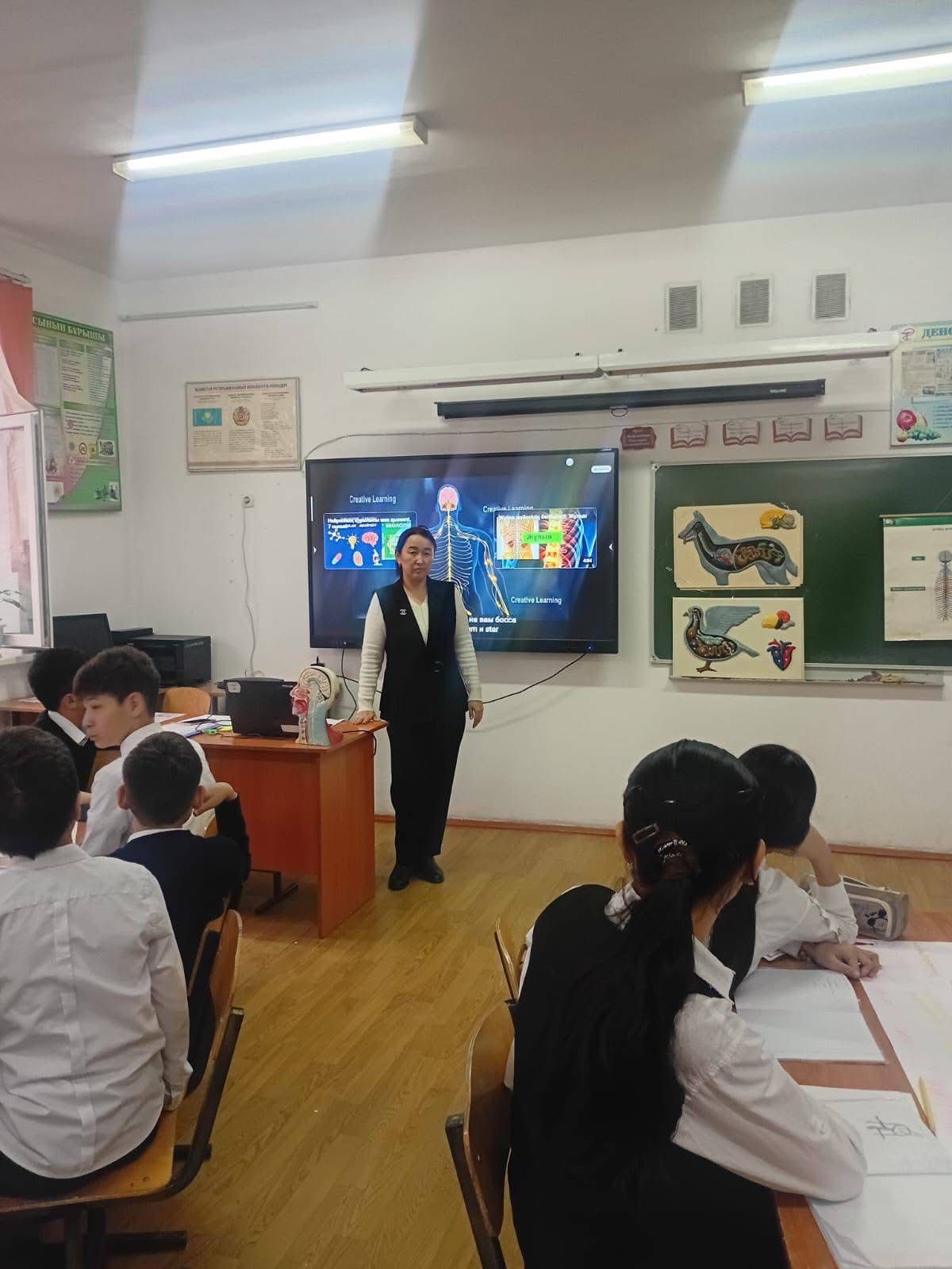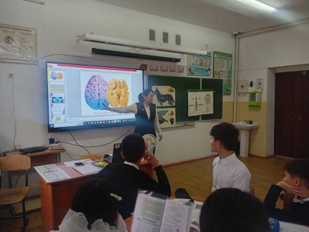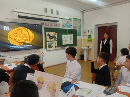 7 "Б" сынып оқушыларымен "Ми бөлімдерінің құрылысы мен қызметтері. Үлкен ми сыңарлары" тақырыбында ашық сабақ өткізді.